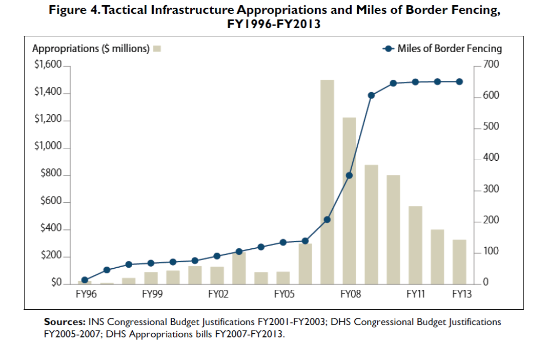 No obstante, la idea de un muro que abarcará cuatro estados desde California a Texas, no es un plan nuevo. Alrededor de 670 millas en la frontera se completaron de acuerdo con la ley establecida por George W. Bush, llamada “valla segura” (Secure Fence Act). Construir esta parte en aproximadamente un tercio de la frontera costó alrededor de 2 mil 400 millones de dólares, tomando en cuenta que, según expertos en migración, la construcción en la administración del anterior presidente republicano se dio en las áreas más fáciles y menos costosas para cercar.