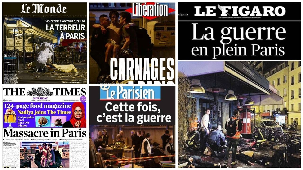 Todos los diarios franceses ponen en portada los ataques en la capital francesa mostrando imágenes de lo sucedido, al igual que la mayoría de los principales periódicos internacionales.