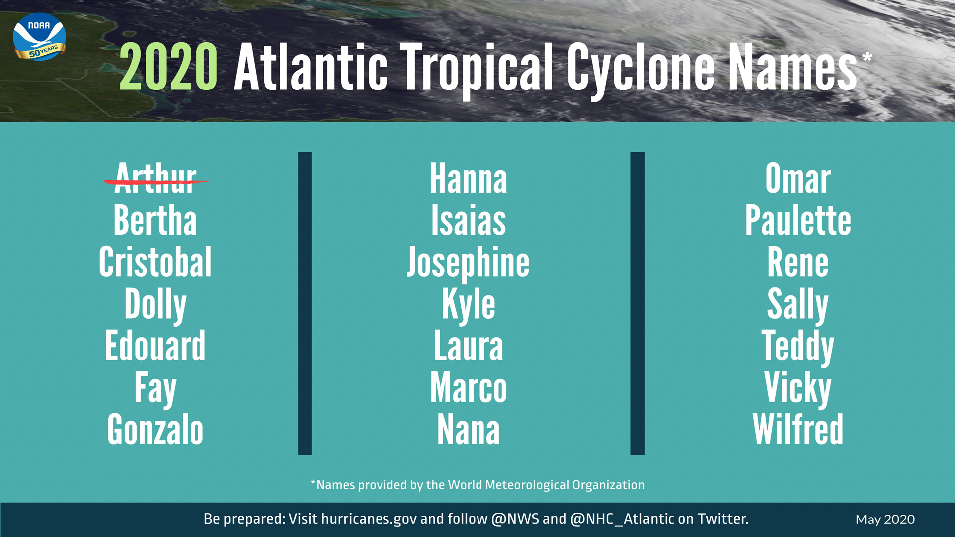 El Centro de Predicción Climática de NOAA pronosticó un rango probable de 13 a 19 tormentas tropicales con nombre – vientos de 63 kilómetros por hora (km/h), de las cuales entre 6 y 10 podrían convertirse en huracanes, con vientos de 119 km/h, de los cuales de 3 a 6 podrían derivar en huracanes mayores, es decir con vientos máximos sostenidos de 178 km/h o más.