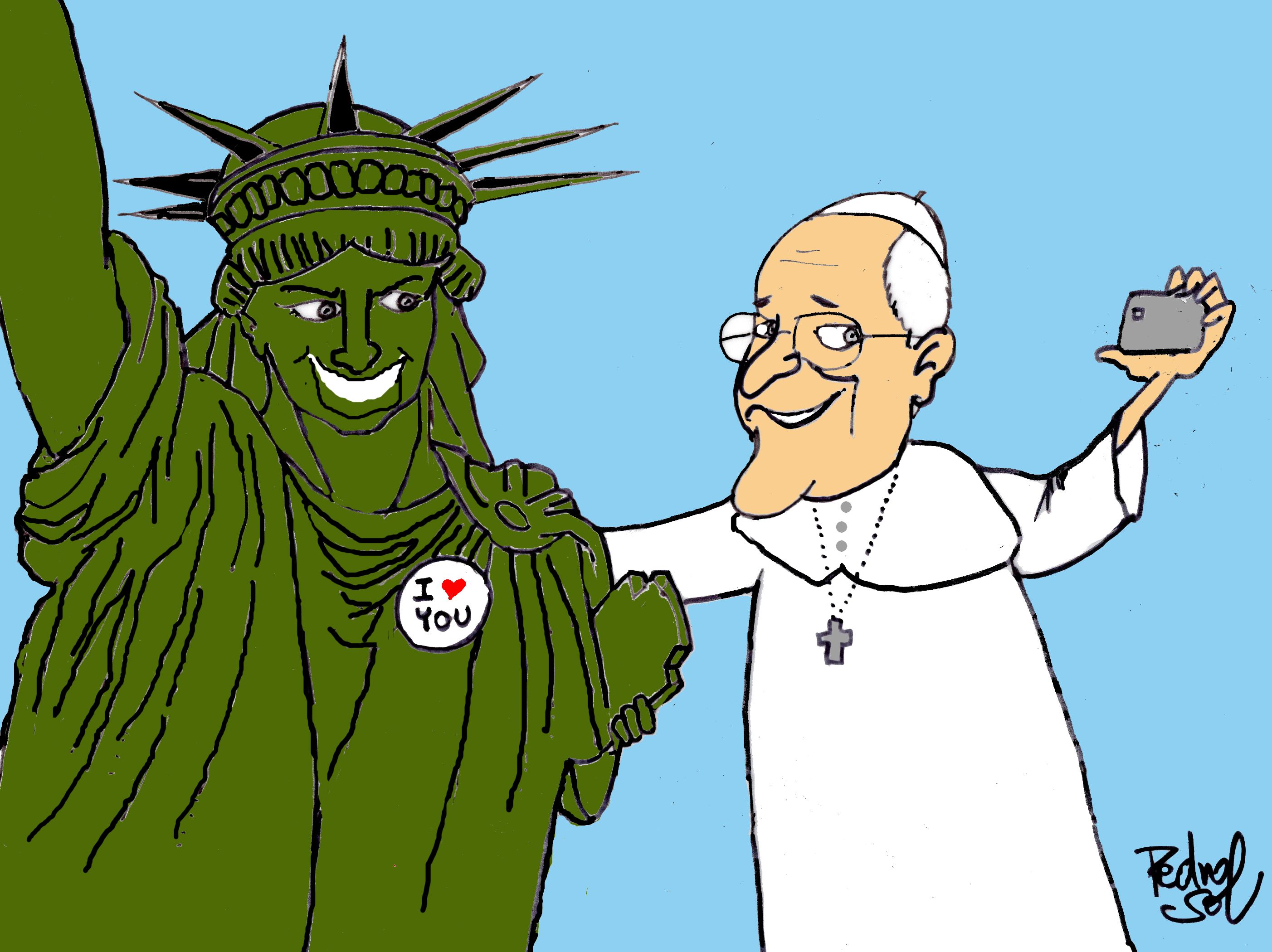 El caricaturista Pedro Sol ilustra en su columna ¡Quema mucho el sol! la visita del Papa Francisco a Estados Unidos