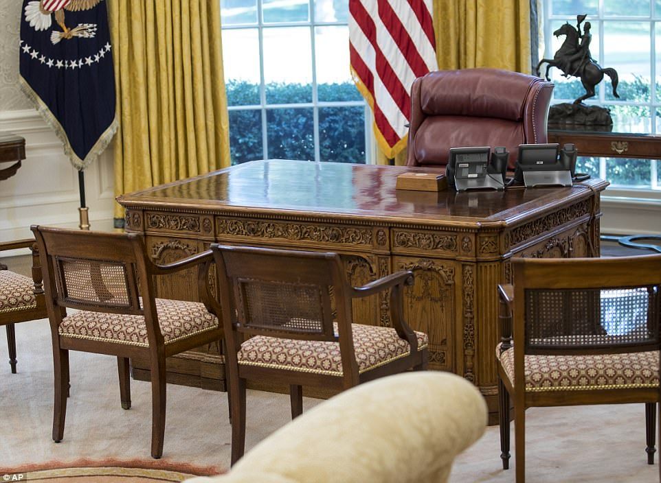 Como se ve en las fotos a continuación, la Oficina Oval, la Sala Roosevelt y otras áreas del ala oeste se han renovado.