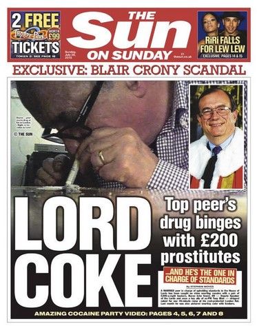 John Sewel, vicepresidente de la Cámara de los Lores de Reino Unido, presentó su renuncia, después de que se publicaron fotos y videos que lo mostraban con prostitutas y consumiendo cocaína.