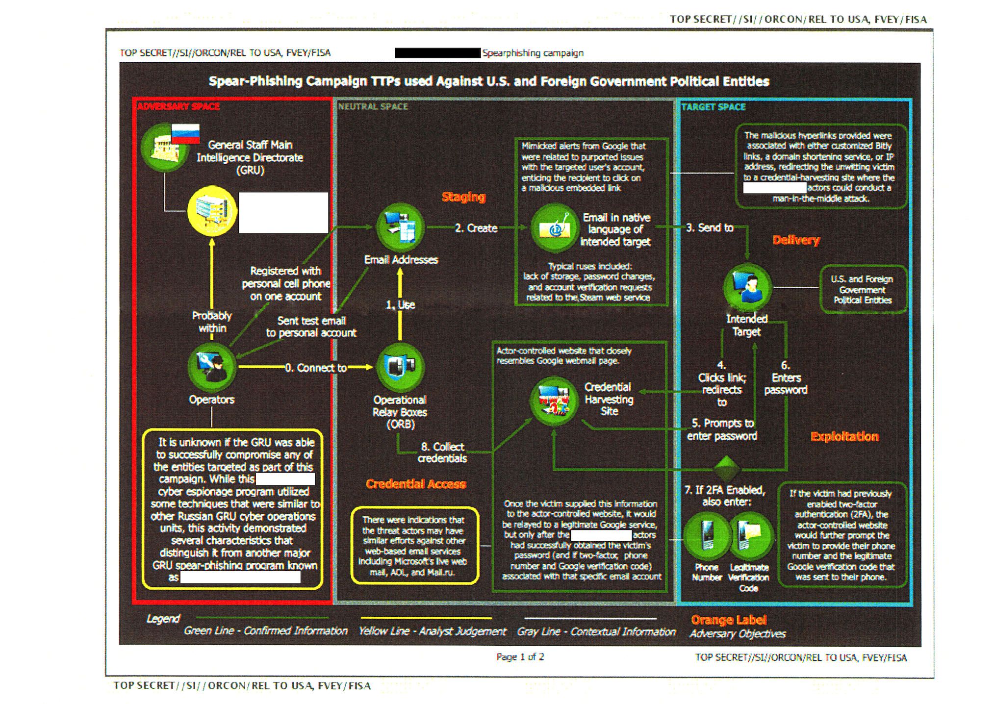 La inteligencia militar rusa “ejecutó operaciones de ciberespionaje contra una compañía estadounidense en agosto de 2016 evidentemente para obtener información sobre programas informáticos relacionados con las elecciones y soluciones informáticas, de acuerdo con la información disponible en abril de 2017”, se indica en el documento.