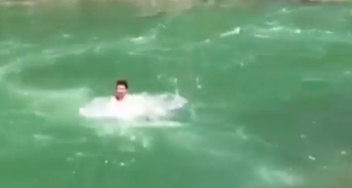 En un video grabado a principios de mayo, se ve cómo una chica saltó y pudo regresar a la orilla.