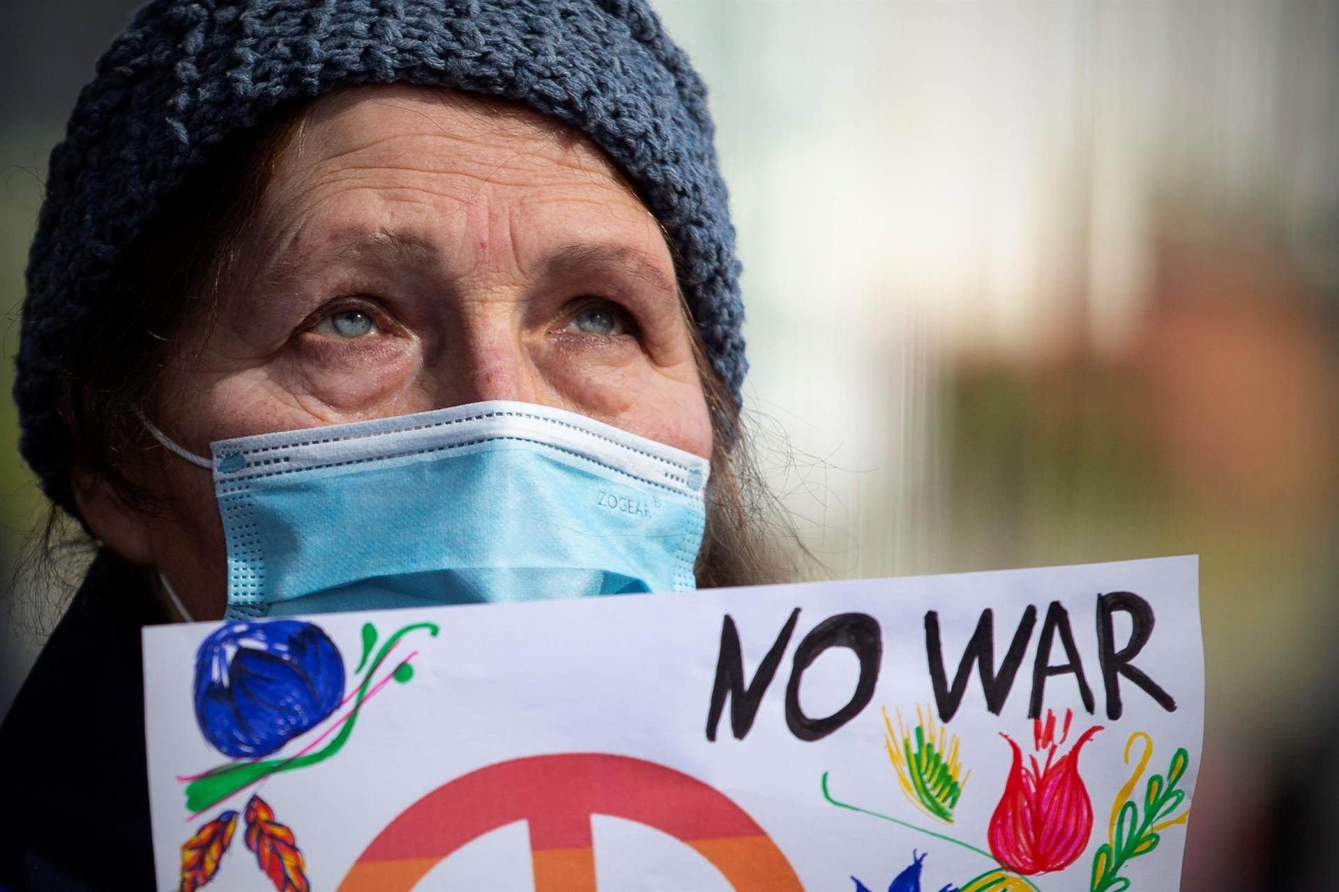 Manifestación en Portugal contra guerra entre Rusia y Ucrania. Foto de EFE