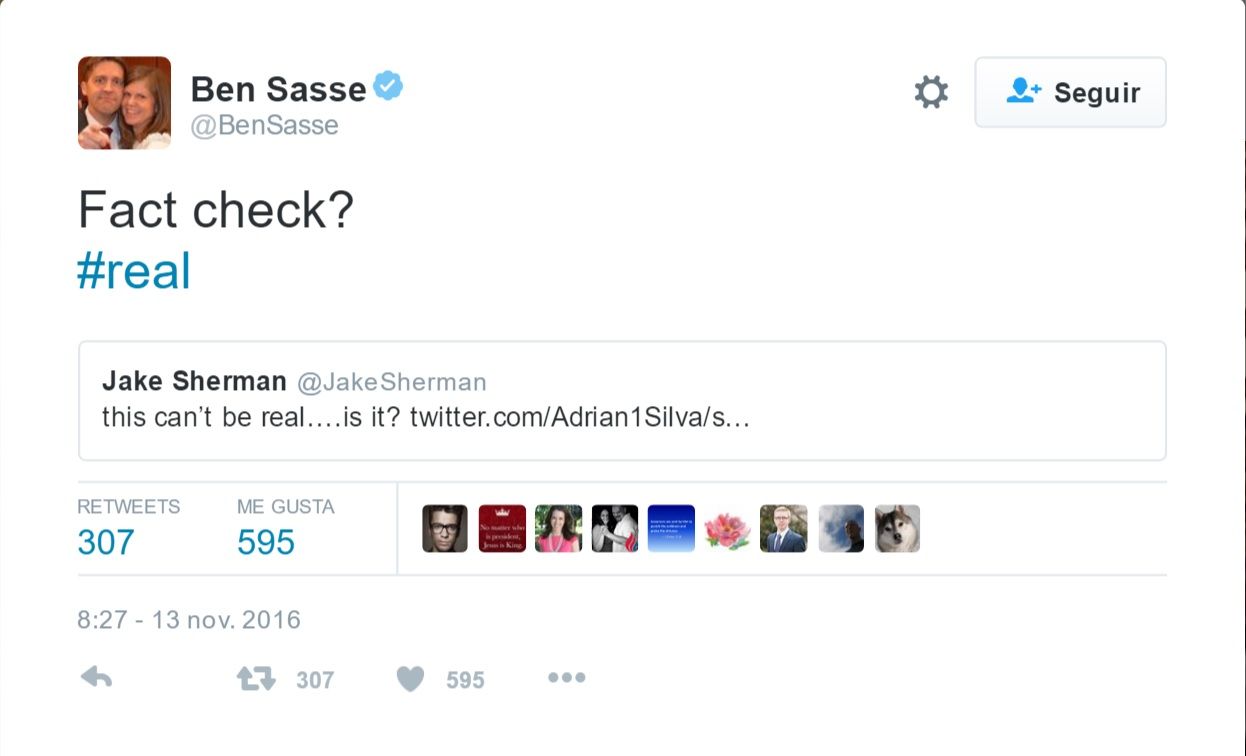 En respuesta, un vocero del senador Sasse informó al medio The Guardian lo siguiente: