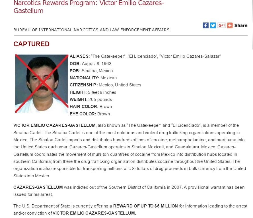 El narcotraficante Víctor Cázares Gastellum, alias “El Portero” y “El Licenciado” fue sentenciado a 15 años en prisión federal de EE.UU.