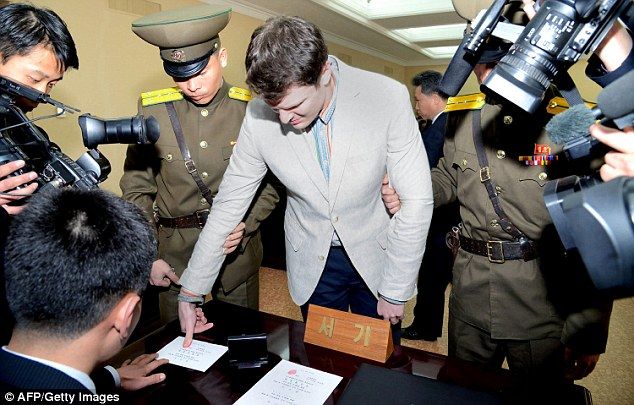 Otto Warmbier, estudiante de 21 años de la Universidad de Virginia, fue condenado y sentenciado tras un juicio de una hora en la Corte Suprema de Corea del Norte.