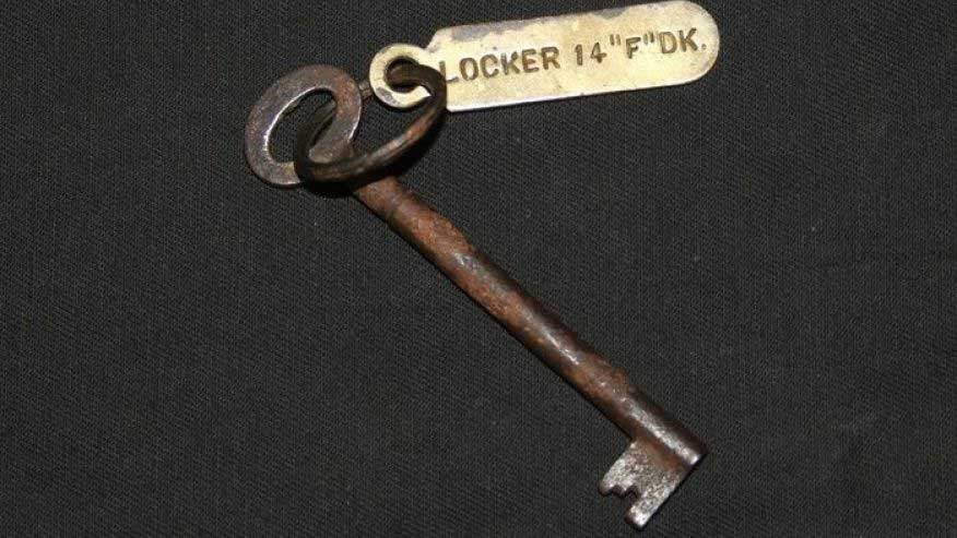 La llave, adherida a una placa de latón con las palabras “Casillero 14 F Cubierta”, fue enviada a la viuda embarazada de Sedunary después de que fue recuperado el cuerpo de su esposo.