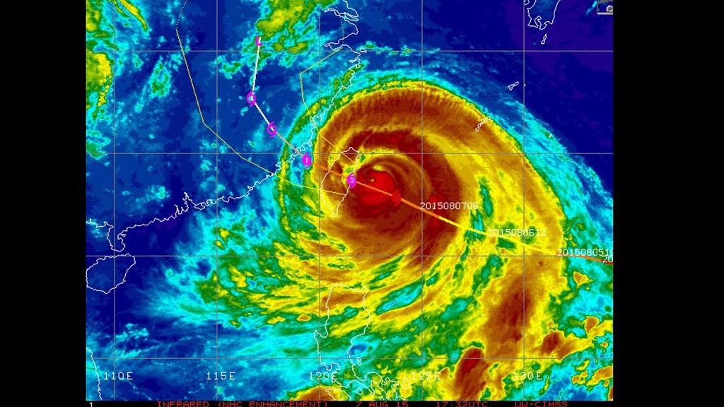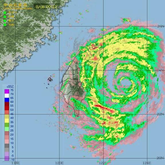 El súper tifón Soudelor se encuentra cruzando la isla de Taiwán por la mitad, para posteriormente golpear la costa sureste de China