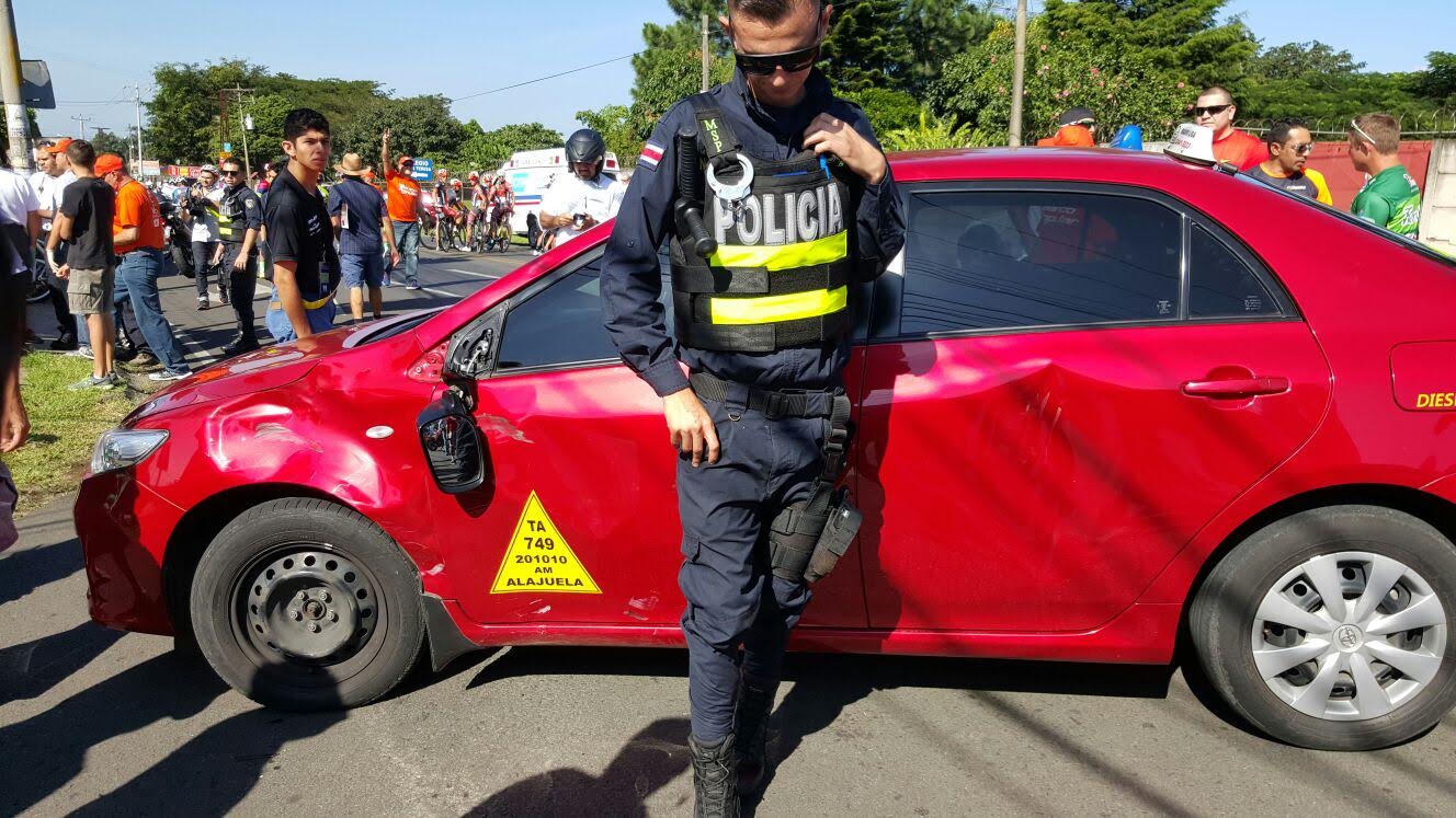 El chofer de un taxi provocó un accidente y paralizó la primera etapa de la Vuelta a Costa Rica