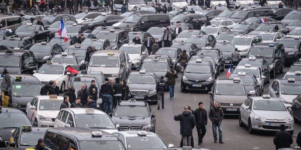 Uber envió un mensaje a sus clientes franceses alertando de posibles episodios de violencia durante las protestas y afirmó que el objetivo de las marchas es “presionar al gobierno… para que limite la competencia”. La empresa indicó que limitar los servicios de transporte basados en aplicaciones de celulares aumentaría los precios, dejaría a conductores sin empleo y llevaría a los consumidores de vuelta a la era “antes de las aplicaciones y los celulares”.