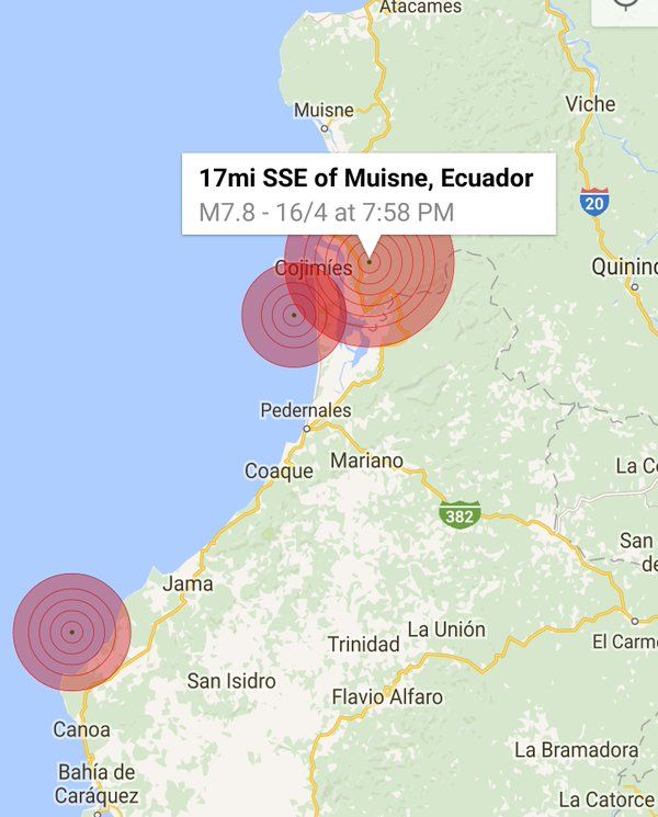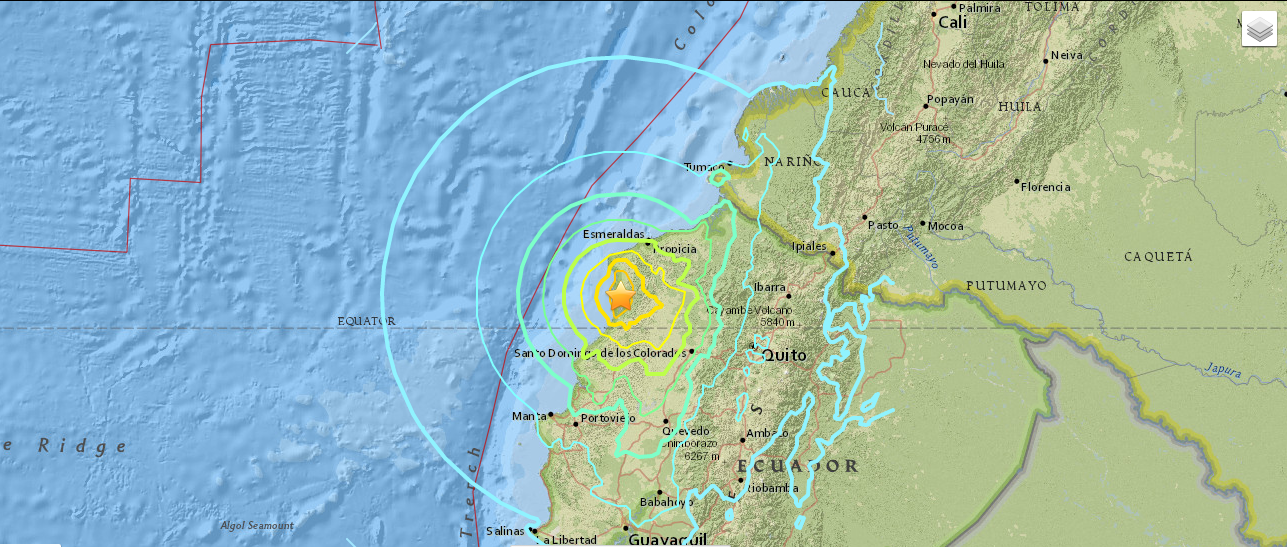 El epicentro tuvo lugar en la provincia de Esmeralda. Foto de USGS Gov.