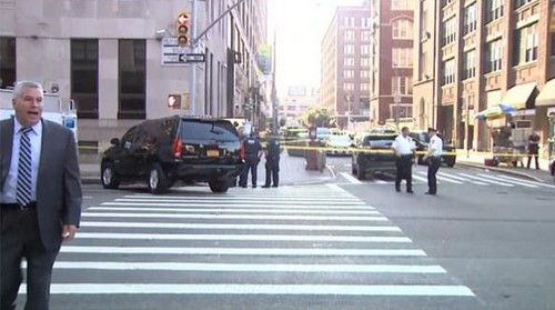 El incidente se reportó hacia las 17:10 h locales. Personal de emergencia encontraron una persona muerta en el número 201 de la calle Varick, cerca del cruce con la calle Houston.