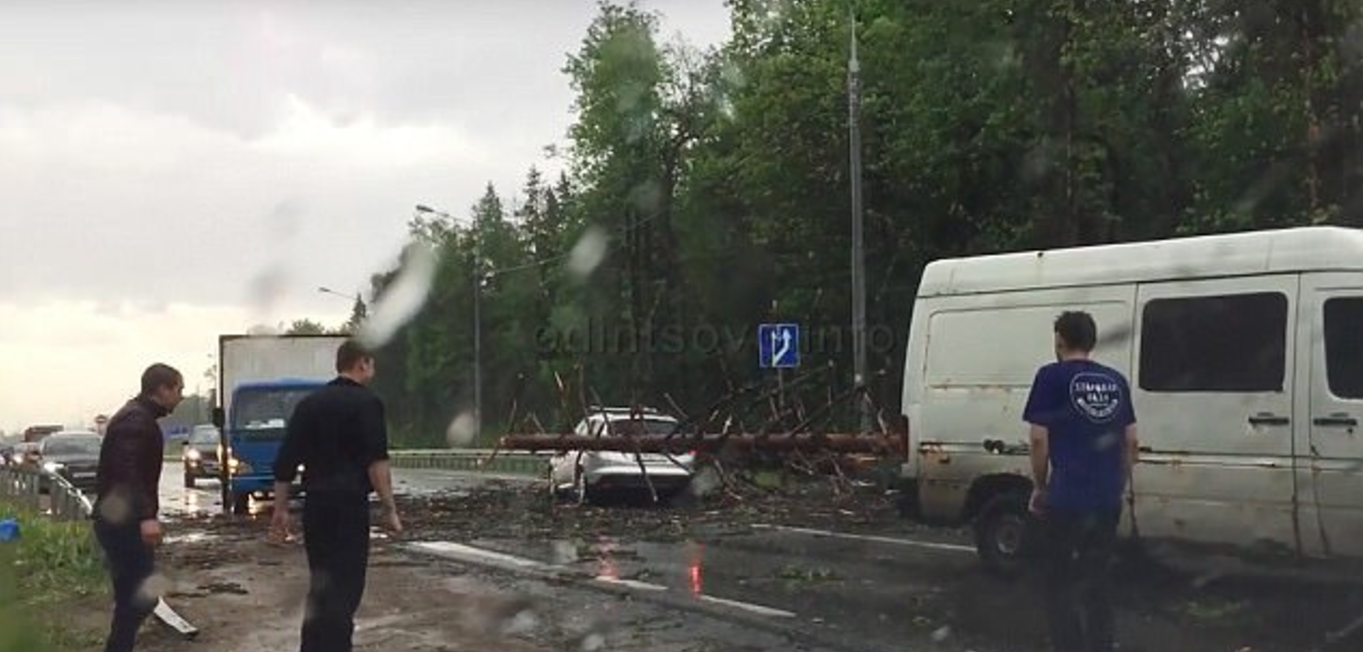 Uno de los numerosos árboles derrumbados bloqueó la salida de la residencia del primer ministro ruso, Dmitri Medvedev, donde se encontraba de visita una delegación de empresarios españoles, según Sputnik.