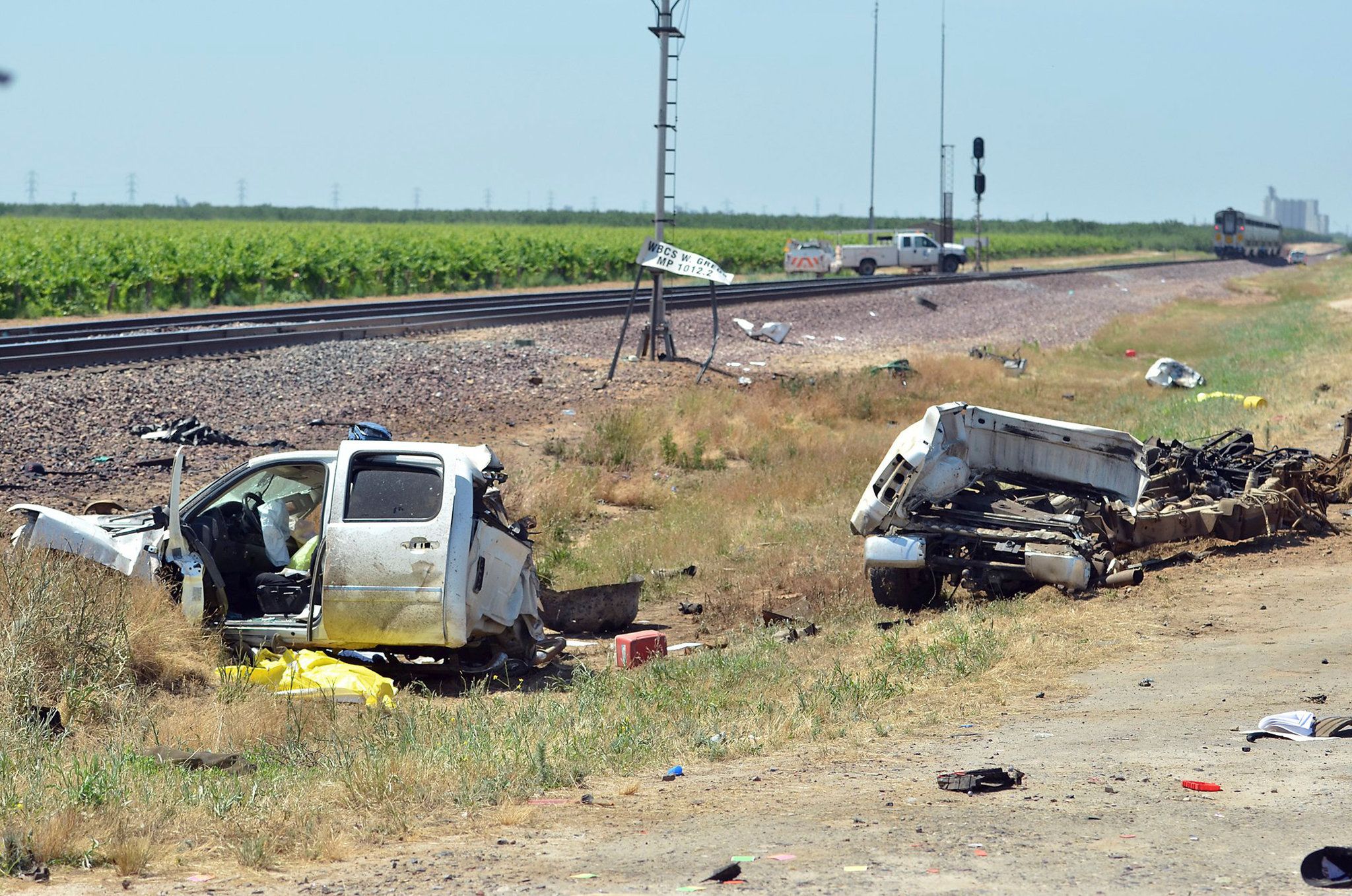Los restos de la camioneta se esparcieron por los viñedos cercanos. El maquinista del tren se quejó de dolor, y el impacto dañó uno de los faros de la máquina, detalló McConnell.