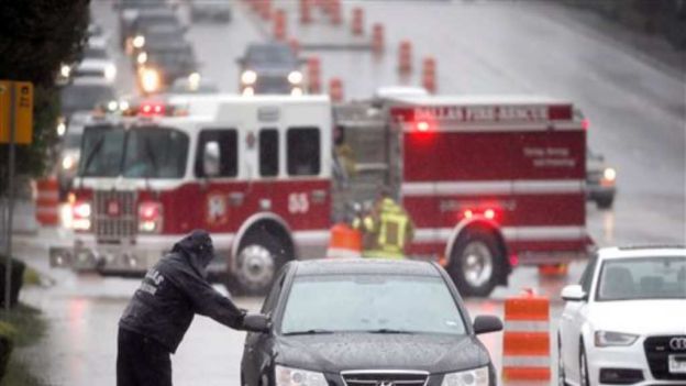 De acuerdo con el sistema de información meteorológica AccuWeather, varios camiones de remolque fueron volteados por la potencia de los vientos, por lo que varias carreteras en la zona central de Texas fueron clausuradas.