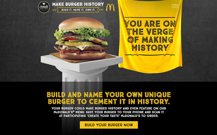 McDonalds creó en el país insular la campaña, misma que resultó ciertamente polémica. “Crea a tu gusto” es el título de la iniciativa que permite a los clientes crear ellos mismos, a partir de una variedad de productos, sus propias hamburguesas y ganar unas papas y un refresco. Si bien solo se podía elegir entre carne o pollo para la carne, había una gran cantidad de opciones disponibles para coberturas. Su creación podía incluir guacamole, piña a la plancha e incluso alioli de limón de chile.