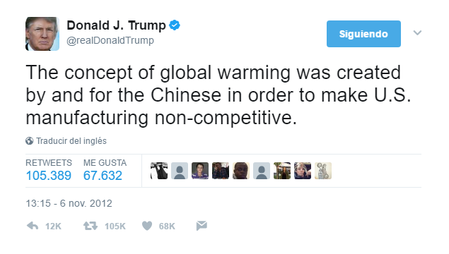 Ha sido el mismo Trump quien ha dicho anteriormente que el cambio climático no existe y que este era un invento de los chinos