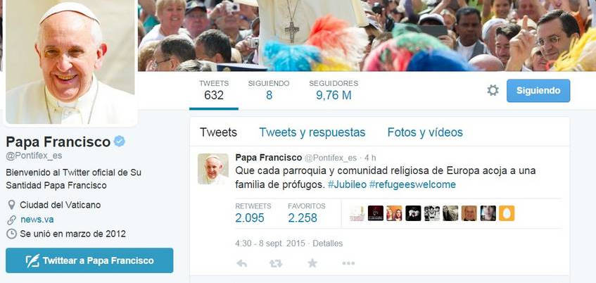 — Papa Francisco (@Pontifex_es) September 8, 2015