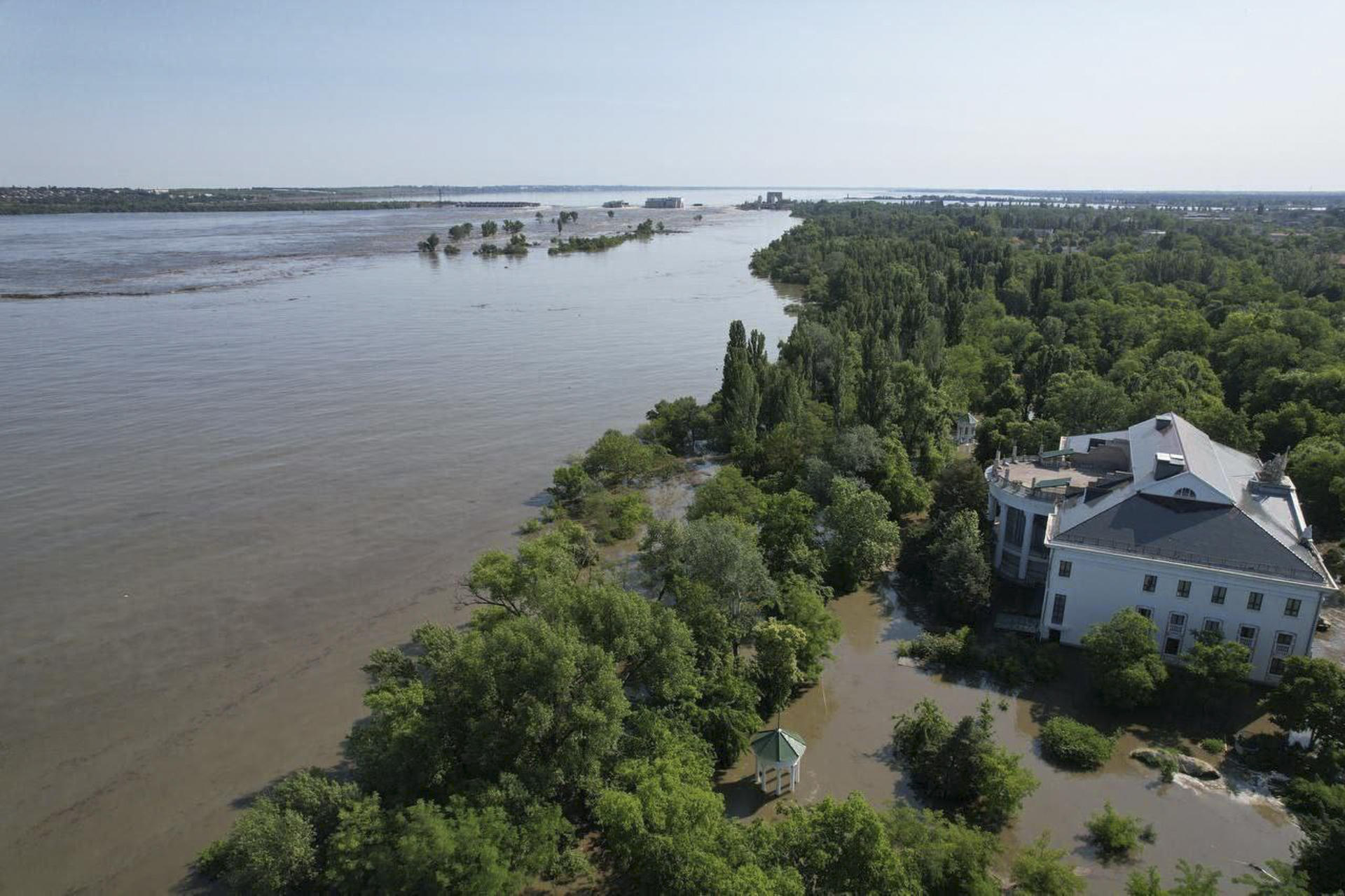La superficie anegada es aún mayor en la margen oriental del río, donde se encontraba la Central Hidroeléctrica de Nueva Kajovka, pero las autoridades ucranianas no pueden ofrecer un balance preciso de daños al estar esta parte de la provincia de Jersón ocupada por Rusia.