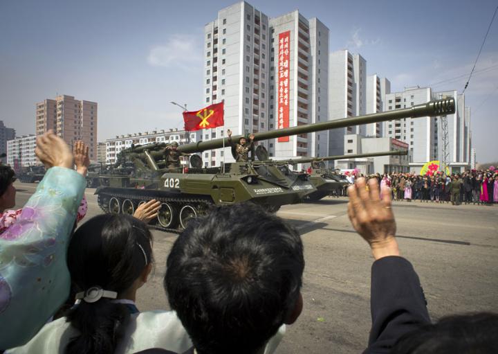 Desfile militar del 15 de abril, 2012 cuando se celebró el centenario del nacimiento del fundador del país, Kim Il Sung.