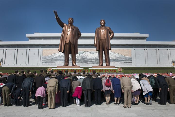 Las personas se inclinan ante las estatuas de Kim Il Sung y Kim Jong Il en Pyongyang.
