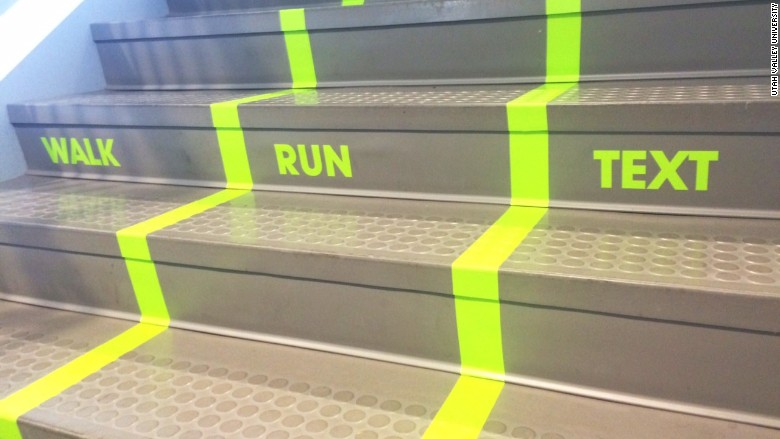 Las escaleras están divididas en “caminar”, “correr”, “textear”. Foto de Universidad del Valle de Utah