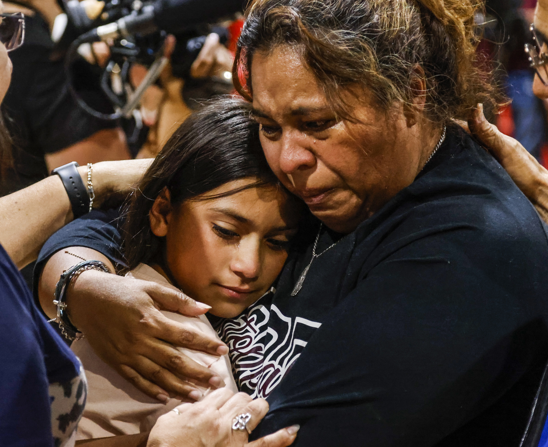 Son también niñas las que ahora le ponen las manos en los hombros a Esmeralda, le susurran que deje de hablar si quiere, tratan de llenar el vacío. A su alrededor, cientos de personas tratan de arroparse unas a otras, se abrazan, sollozan en silencio o en alto.