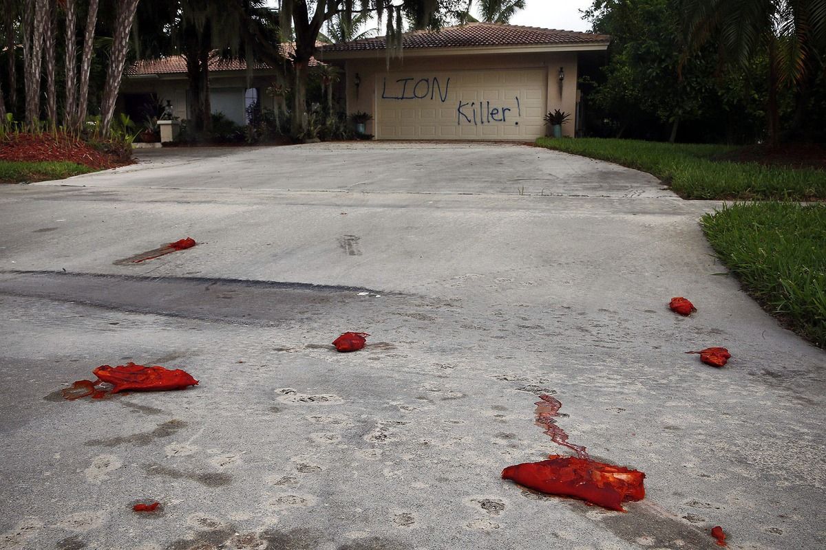 ¡Asesino de leones! Es el mensaje que fue escrito en la entrada del garaje de la casa del dentista y cazador aficionado, Walter Palmer, que hace días se vio envuelto en una controversia internacional al matar a la celebridad del Parque Nacional de Hwange en Zimbabue.
