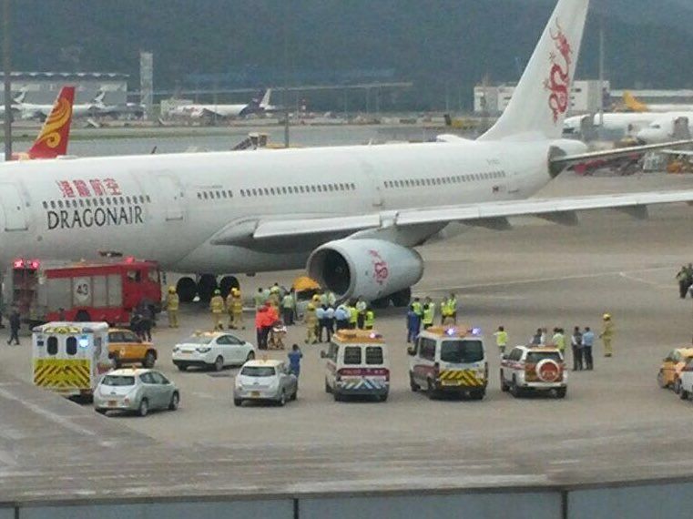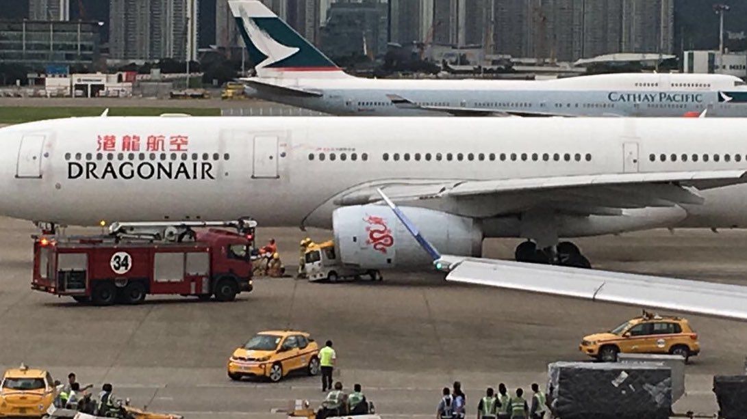 El Airbus A330 de Dragonair se encontraba en rodaje en el Aeropuerto Internacional de Hong Kong, el octavo con mayor tráfico de pasajeros del mundo, cuando el vehículo chocó contra el motor izquierdo del avión.