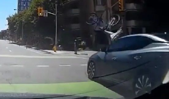 Los hechos ocurrieron en Ottawa, Canadá, cuando el hombre a bordo de una bicicleta cruza imprudentemente una avenida
