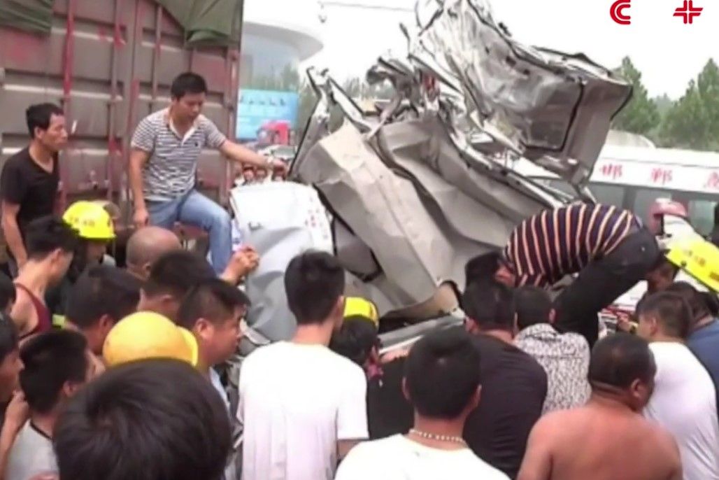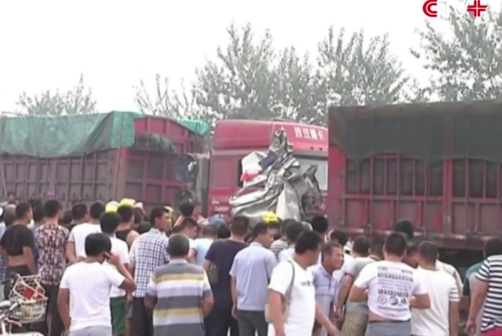 Un niño murió durante el accidente en el que estuvieron involucrados dos camiones y una combi en una autopista de Hebei, en China