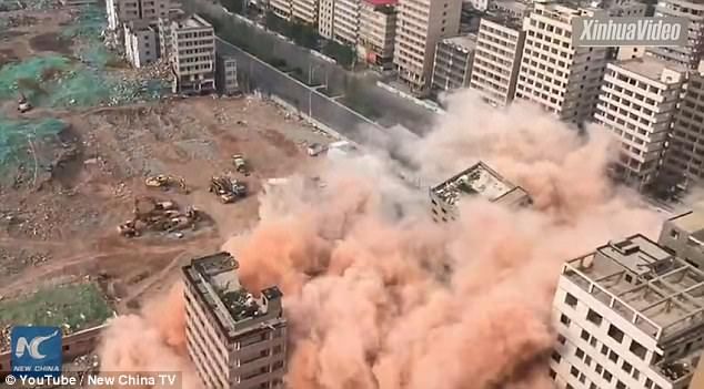 El momento en el que 36 edificios de una ciudad china fueron demolidos en cuestión de 20 segundos fue capturado en video.