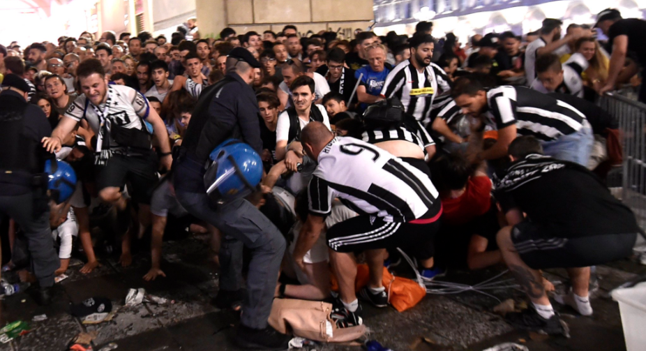 Aficionados de la Juventus que veían la final de la Champions League en la Plaza de San Carlo en Turín salieron corriendo en pánico por lo que aparentemente fue una falsa alarma.