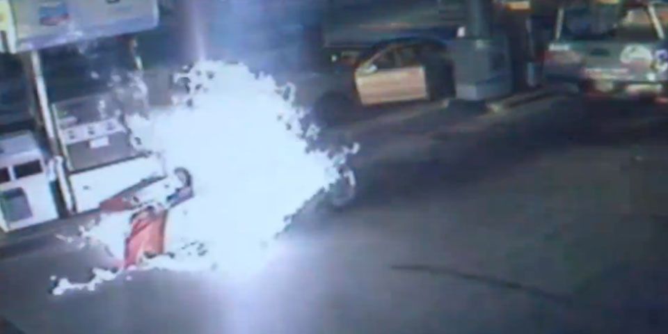 El teniente Dan Dupree, del Departamento de Bomberos del condado Cobb, detalló que el hombre dejó su motocicleta encendida mientras la llenaba de gasolina, y no se dio cuenta de que esta comenzó a desbordarse. El hidrocarburo derramado se encendió al entrar en contacto con el escape de la moto, por lo que envolvió en llamas al motociclista y su vehículo.