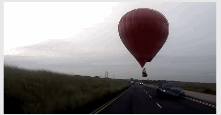 Por suerte, tanto el globo como los tripulantes no se topan con camiones o tráileres altos con los que pudieron haber chocado.