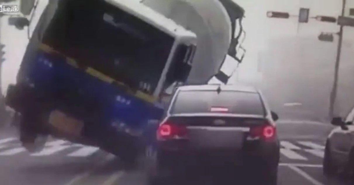 Según se informa en el canal de Youtube del sitio Liveleak, el accidente ocurrió la mañana del miércoles en un transitado crucero de Corea del Sur.