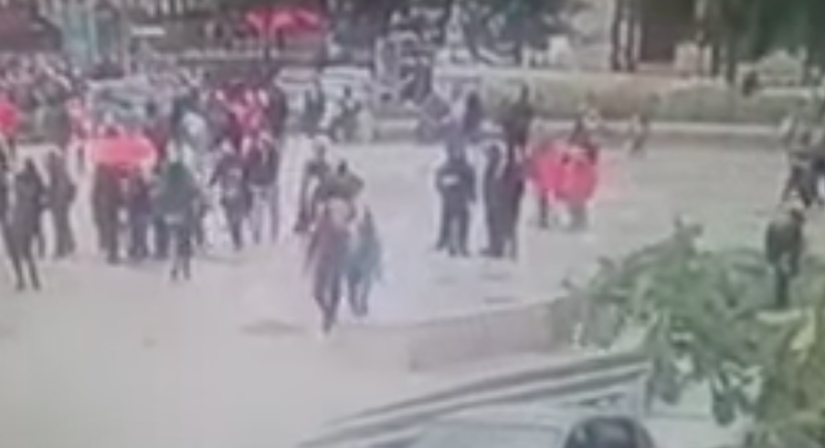 “Una persona armada con un martillo se acercó por atrás de los agentes y comenzó a golpear a uno de ellos”, señaló.