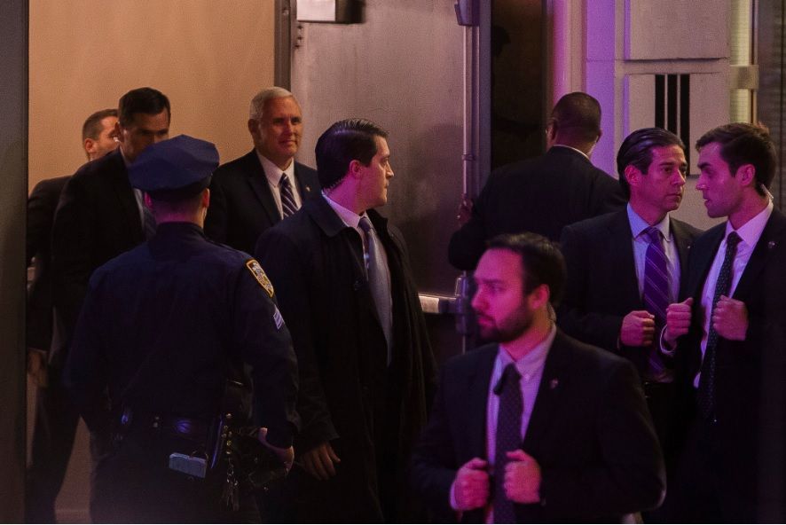 El vicepresidente electo de los Estados Unidos, Mike Pence, acudió a la obra teatral “Hamilton”, un musical en Broadway de Lin Manuel Miranda sobre los padres fundadores de los Estados Unidos, en el cual él fue el protagonista de toda la función, tanto al inicio como al final.