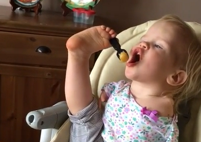 No sin dificultades, Vasilina, una bebé que nació sin brazos, logra comerse una papa utilizando sus pies para sostener su tenedor, en un video que ha cautivado a las redes sociales.