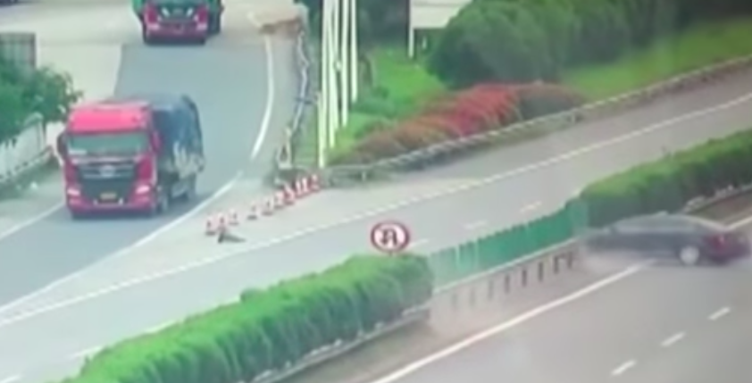En las imágenes se puede ver cómo un vehículo choca contra una jardinera en una autopista china.