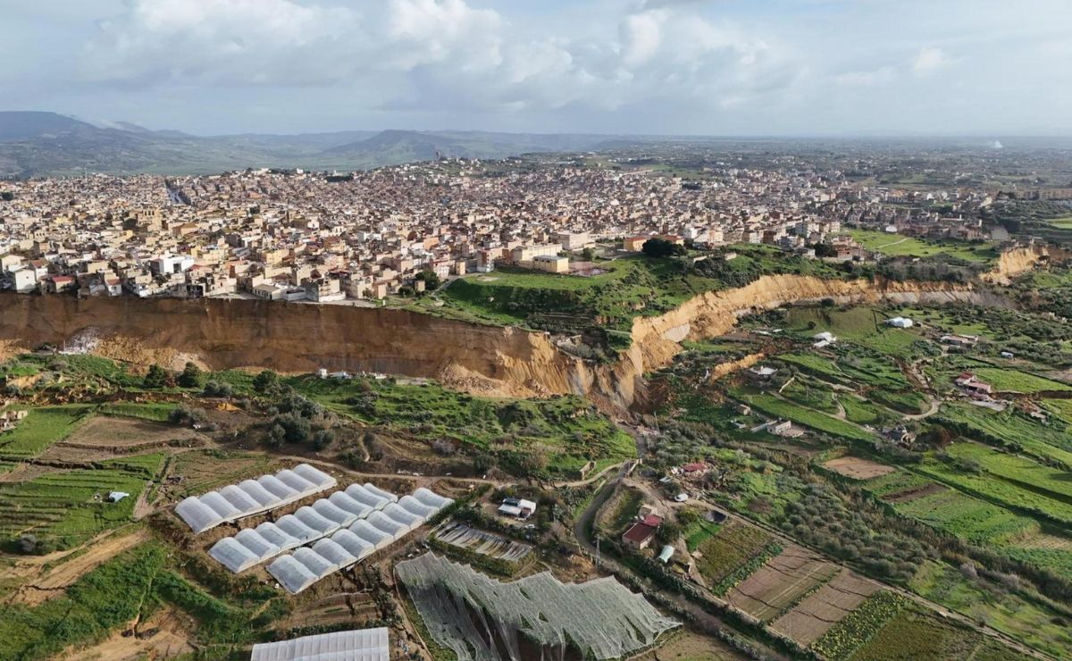 Pueblo de Niscemi, en Sicilia, al borde de barranco. Foto de EFE