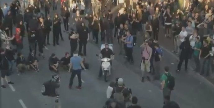 Un video de un repartidor de pizza que tuvo que esquivar a bordo de una motocicleta a cientos de manifestantes que protestaban contra la cumbre del G-20 en Hamburgo se ha viralizado.