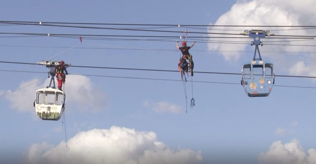 El incidente sucedió al quedar unas de las 32 telecabinas atascada en el cableado de una torre. El rescate se prolongó durante cinco horas