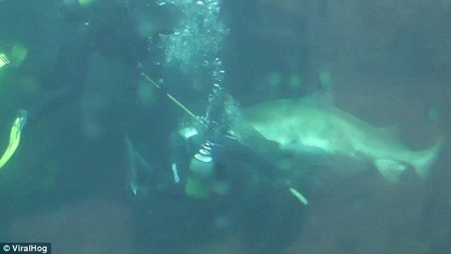 Los buzos intentaron tranquilizar a tiburón tigre de arena embarazada mientras trataban de ayudarla.