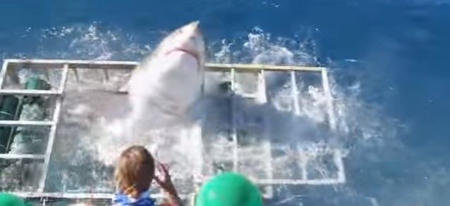 Fue captado en video el momento aterrador en el que un buzo se encontró atrapado dentro de una pequeña jaula con un gran tiburón blanco y de alguna manera salió ileso.