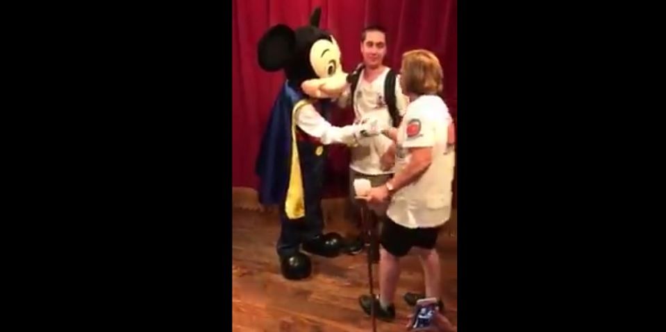 Un joven visitaba por primera vez Magic Kingdon, en Orlando, cuando se encontró con Mickey Mouse. El momento fue por demás emotivo