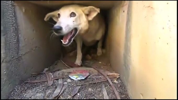 #Viral El emotivo rescate de perra atrapada en alcantarilla