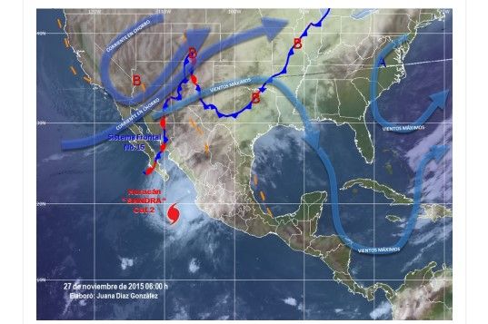 De acuerdo con el pronóstico de desplazamiento y evolución, se espera que se degrade en las próximas horas a huracán categoría 1, al sureste de Cabo San Lucas; seguirá perdiendo fuerza y el domingo llegue a tierra, aproximadamente a 190 kilómetros al noreste de Topolobampo, Sinaloa.